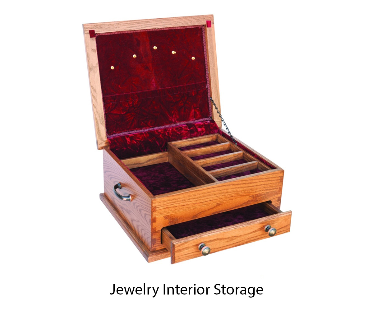 Features: • Top shelf is moveable • Lined interior • Dovetailed edge detail for stability