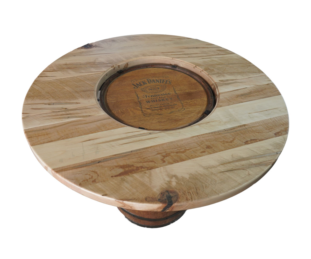 Features: • Base is a reclaimed Jack Daniel’s whiskey barrel • Glass in the center