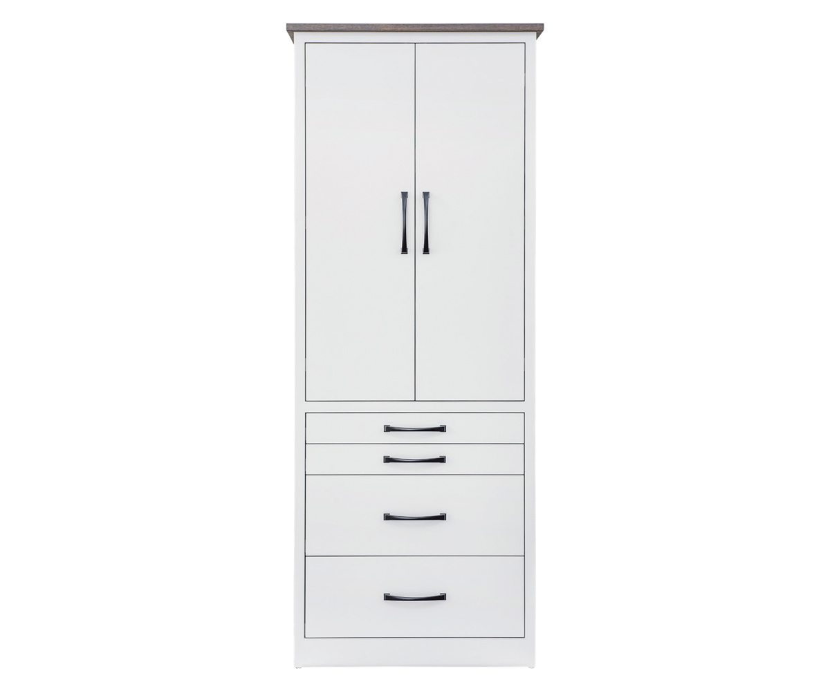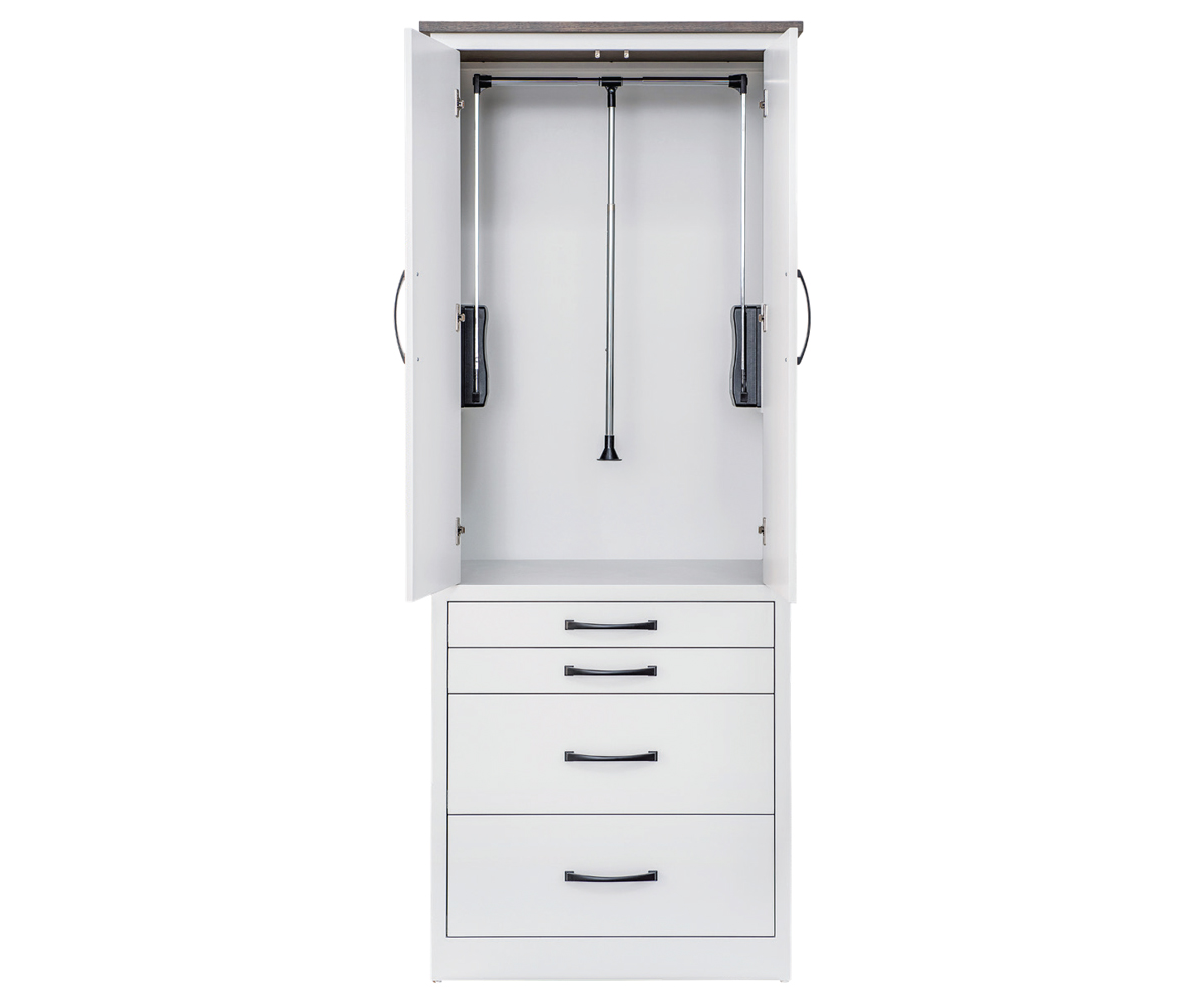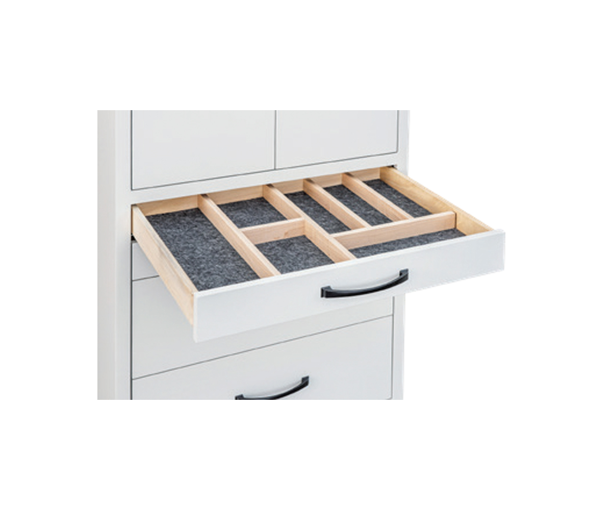 Features: • Pull down closet rods behind doors • Jewelry drawer inserts in small drawers