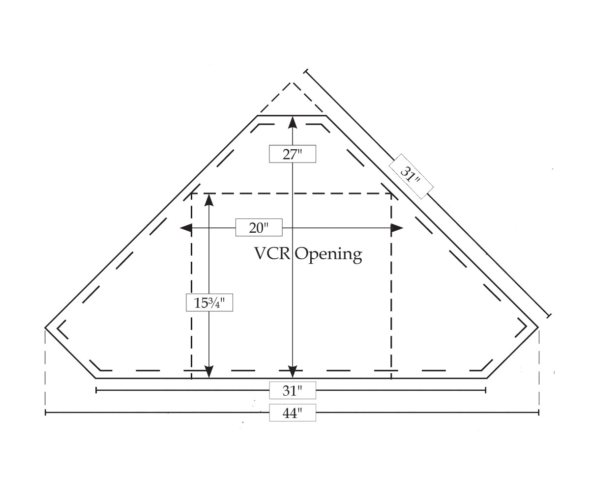 Dimensions: 44″W x 27″D x 28″H VCR Opening: 5″H
