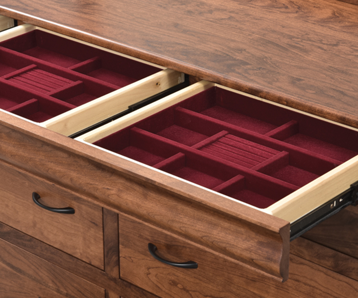 Features: • Dovetailed drawers • Hidden jewelry drawer in the molding