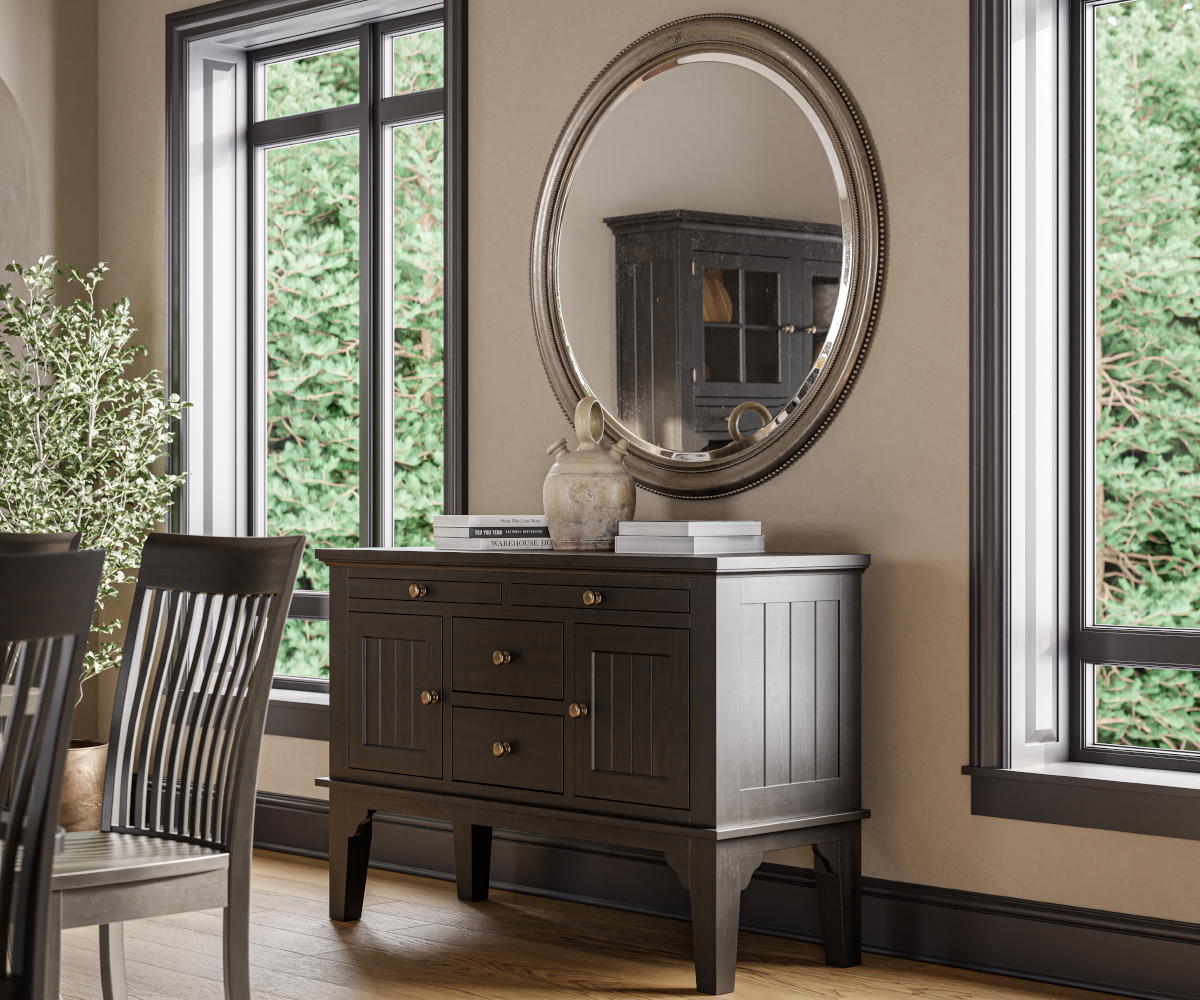 This dining room set is Amish-made in Ohio using time-tested woodworking techniques. The Newbury collection features a leg table, dining chairs, and a hutch/server. This traditional style set and is made with American hardwoods for durability and beauty. The table can be purchased as a solid top table or with leaf extensions. Make this dining set your own by choosing from our selection of oak, brown maple, cherry, hickory, or QSWO wood options.