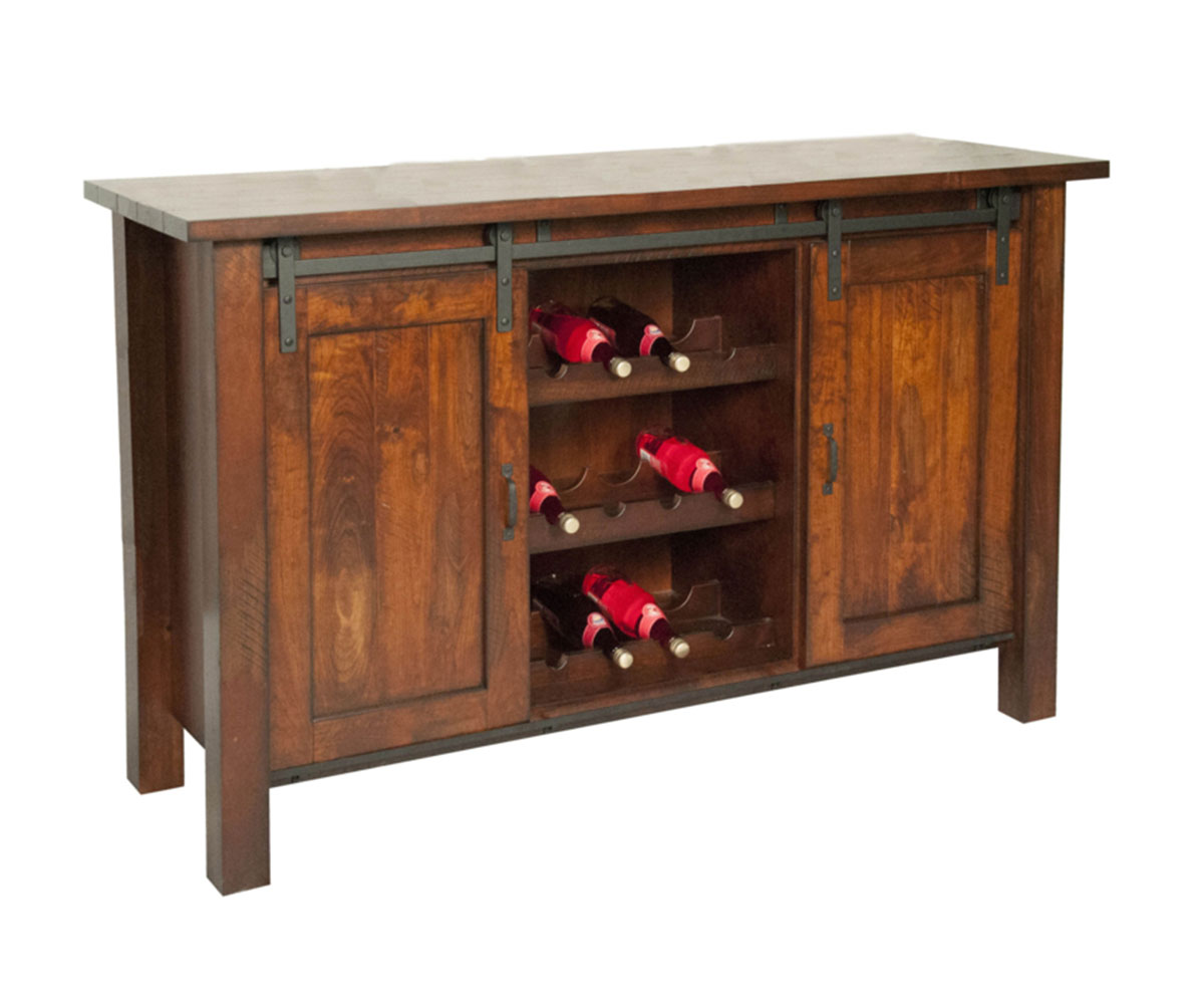 Features: • Sliding barn doors • Wine bottle racks in center