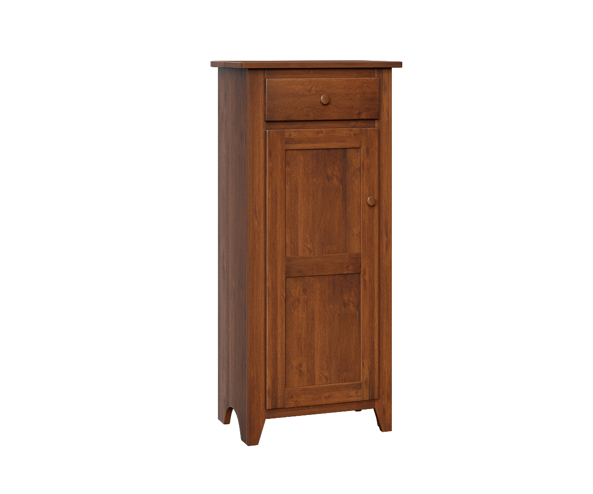 Features: • Dovetailed drawer • Full extension drawer slides • Two adjustable shelves behind door