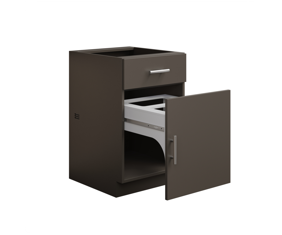 • Two trash cans fit into pullout